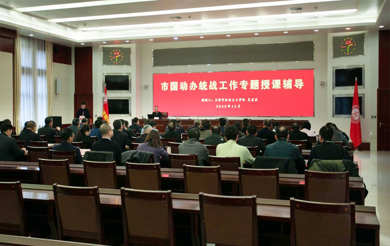 为深入学习贯彻党的二十届四中全会精神和习近平总书记关于做好新时代党的统一战线工作的重要思想,扎实推动统战工作责任制落实,进一步提升党员干部做好统战工作的能力水平。近日,市国动办举办统战工作专题讲座,邀请市社会主义学院教研室主任、硕士研究生导师吴星辰教授,围绕“深入学习贯彻习近平总书记关于做好新时代党的统一战线工作的重要思想”这一主题进行辅导授课,市国动办系统党员干部70余人参加。