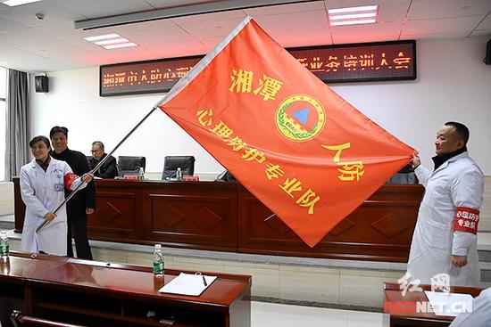 会上宣读了湘潭市人防心理防护专业队任命书,市人防办相关负责人为市人防心理防护专业队授旗。在授旗仪式上,队员纷纷表示,一定牢记使命、听从指挥、刻苦训练,不断学习提高自身的知识和技能,切实履行人防心理防护专业队员的职责,为推进湘潭经济社会发展发挥应有的作用。
